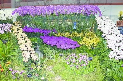 在展廳里,你可以見到用文心蘭制作的彩樹,用蝴蝶蘭搭建的民居,用各種洋蘭塑造的栩栩如生的孔雀,景觀是本屆蘭花節的最大看點,洋蘭家族中的蝴蝶蘭、石斛蘭、仙履蘭、文心蘭、萬代蘭、腎藥蘭等幾位主角悉數出場,品種達200多個,用花量共計兩萬余株。