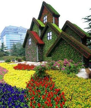 2010年9月15日,北京西單路口以“和諧家園”為主題的立體花壇。國慶前夕,北京長安街沿線將建11處立體花壇。9月25日將全部完工建成。