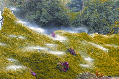 市園林建筑工程公司,把網絡上盛行的“開心農場”搬進解放公園,植物雕成的大象、長頸鹿、烏龜、灰兔等形象十分逼真;菜園里等待采摘的南瓜,讓人忍不住想當一回“小偷”。