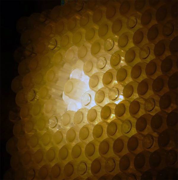 ▲由回收寶特瓶再制而成的寶特瓶,是流行館的主要建材之一。