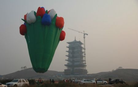 10月8日下午,在西安浐灞生態區正在籌建中的世園會園區,一束世界最高、造型新穎、色彩艷麗的“郁金香巨型氣球”徐徐升空。一場以迎接西安世園會,展現西安世園會主題和特色的巨型氣球系留升空精彩上演,給國慶節后的西安世園會增添了一道亮麗的風景。