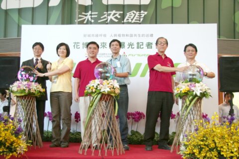 中國風景園林網 2010臺北國際花卉博覽會14座展館中唯一純粹以植物作為展示主題的“未來館”,13日向媒體揭開神秘面紗。臺北市長郝龍斌、花博總制作人丁錫鏞以及“未來館”代表一同點亮魔球,正式揭開花博“未來館”風貌。郝市長表示,“未來館”集合了1700種,30000株以上的植物,九成以上都是在臺灣土生土長,希望藉由花博向世界呈現不同海拔、不同生態環境中臺灣植物的特色。