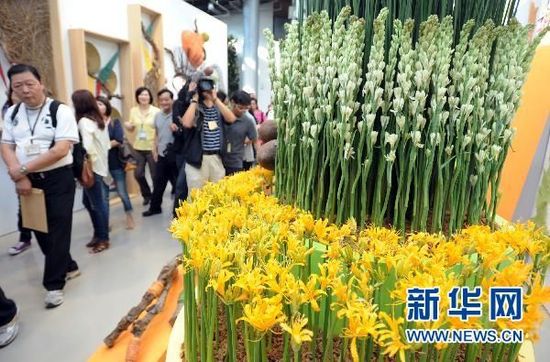 臺北花博會“未來館”的花卉主題區參觀 (新華社 吳景騰/攝)