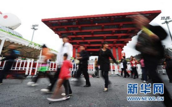 10月24日,游客從上海世博園中國館前的廣場經(jīng)過。截至10月24日10時17分,上海世博會參觀者累計突破7000萬人次(新華社記者 李健/攝)
