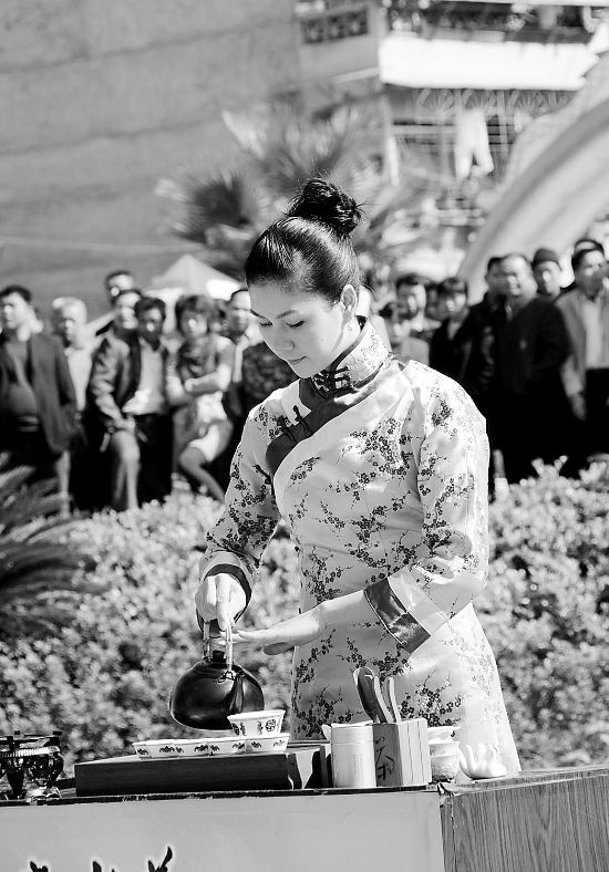 傳統(tǒng)的茶藝表演重現(xiàn),吸引眾多民眾駐足觀看