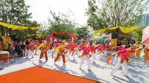 在園博園主會場表演的市民腰鼓隊(圖片:深圳特區(qū)報)