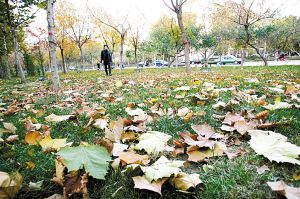秋風勁吹,金黃色的落在秋風中紛紛落下,給地面鋪上了秋裝。盡管石家莊環衛管理部門規定不準當街燒落葉,但近日記者還是陸續接到一些石家莊市民的反映,有人在街邊甚至公園內焚燒落葉。有市民感慨:“與其把落葉焚燒,不如把它當做風景。”