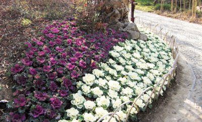 時節入冬,一串紅、萬壽菊等秋季花卉逐漸敗落。為保證公園的景觀效果,近日,古猗園栽植了觀賞期長、色鮮艷、耐寒性能高的紅色、白色羽衣甘藍,形成了南大門、仕女與鹿等區域的花卉景點,給冬日古猗園增添了新色彩。