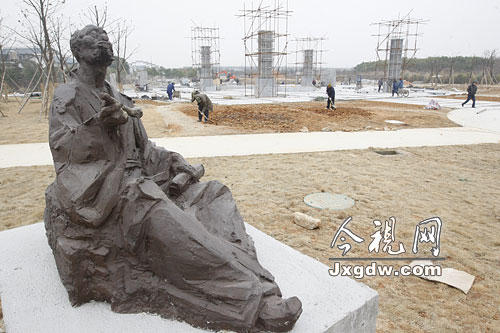 近日,記者來到備受南昌市民關注的江西名人雕塑園施工現場看到,工程的土建工作已經基本結束,已經有數位江西名人提前“入住”了雕塑園。
