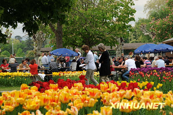 5月2日,前來瑞士萊蒙湖畔小城莫爾日欣賞郁金香的游客絡繹不絕。新華社記者楊京德