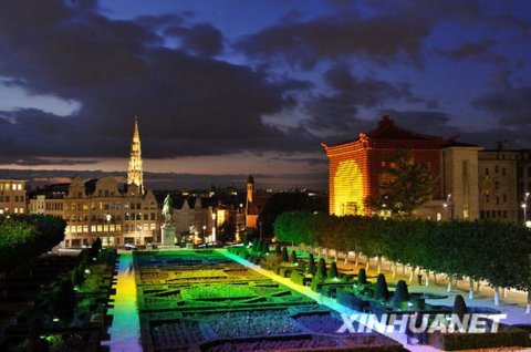 除了用5000多個(gè)紅黃兩色燈籠將大廈從外觀上“變身”中式亭子建筑式樣外,大廈兩側(cè)還以紅黃燈籠排列組成“茶食”兩字,每個(gè)燈籠上還印有組合在一起的“中國(guó)”字樣。由此,“王朝”大廈無論遠(yuǎn)觀還是近看都透出了一股濃濃的中國(guó)味,在夜色中與不遠(yuǎn)處布魯塞爾大廣場(chǎng)上市政廳的尖尖塔樓構(gòu)成了一幅奇妙的畫面。