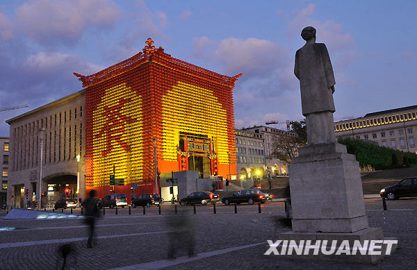 15日,路過比利時(shí)首都布魯塞爾市中心的市民會(huì)驚奇地發(fā)現(xiàn),他們熟悉的“王朝”大廈變成了一座用無數(shù)個(gè)燈籠塑造出來的中式風(fēng)格建筑。中國(guó)藝術(shù)家谷文達(dá)設(shè)計(jì)了這一名為“天堂紅燈——茶宮”的作品。