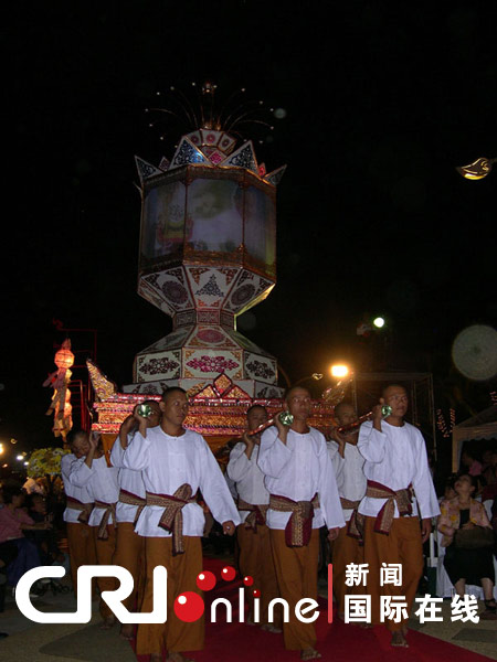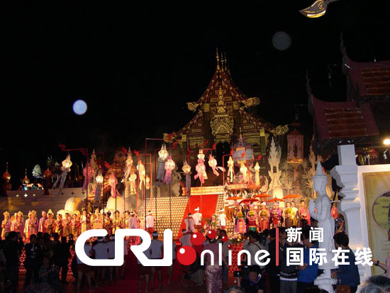 千余男女青年盛裝游行,999盞天燈騰空而起如同點點繁星,陣陣禮花點亮夜空;舞臺上輕歌曼舞,臺下喝彩連連。泰北名城清邁從11月30日起舉行盛大的皇家花會。