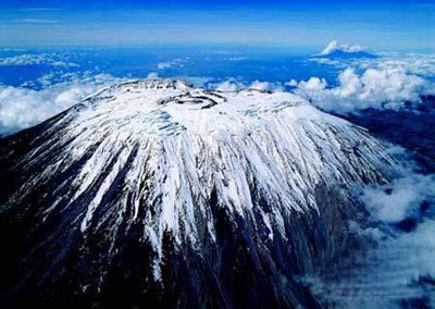 2、坦桑尼亞乞力馬扎羅山:非洲最高山脈乞力馬扎羅山頂終年堆積著白雪,但是由于全球變暖導(dǎo)致積雪融化,它們有可能在15年內(nèi)完全消失。