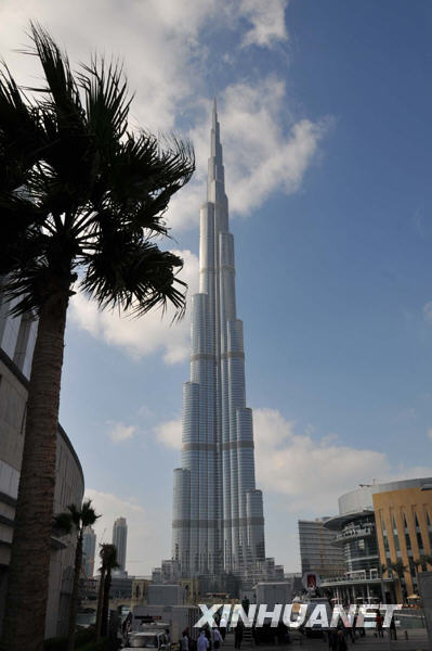 這是1月4日拍攝的位于阿拉伯聯(lián)合酋長(zhǎng)國(guó)迪拜的“哈利法塔”(前稱“迪拜塔”)。阿聯(lián)酋當(dāng)晚為高達(dá)828米的“迪拜塔”舉行盛大落成典禮,并以阿聯(lián)酋總統(tǒng)、阿布扎比酋長(zhǎng)謝赫哈利法·本·扎耶德·阿勒納哈揚(yáng)的名字將其命名為“哈利法塔”。新華社記者安江攝