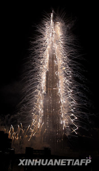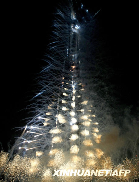 1月4日,位于阿拉伯聯合酋長國迪拜的“迪拜塔”在煙火的點綴下正式亮相。“迪拜塔”當晚舉行落成典禮。據一份聲明稱,“迪拜塔”最終高度為828米。阿聯酋副總統兼總理、迪拜酋長謝赫穆罕默德·本·拉希德·阿勒馬克圖姆以阿聯酋總統、阿布扎比酋長謝赫哈利法·本·扎耶德·阿勒納哈揚的名字將“迪拜塔”重新命名為“哈利法塔”。新華社/法新
