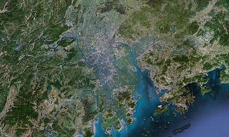 世界上首個巨型城市區誕生,由香港、深圳和廣州組成,生活著大約1億兩千萬人口。圖片來源:NASA。