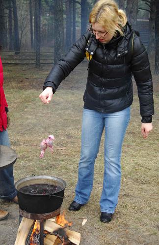 4月4日,在拉脫維亞首都里加的一個民俗園,一位女士煮復活節彩蛋。當天,拉脫維亞人民以各種方式慶祝復活節。新華社記者楊德洪攝