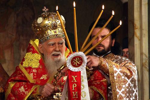 4月3日午夜,在保加利亞首都索非亞,保加利亞大主教馬克西姆舉行祈禱儀式,向全國的教徒祝福。當日,保加利亞東正教教會在索非亞市中心的“亞歷山大·涅夫斯基”大教堂舉行隆重儀式,迎接東正教復活節的到來。新華社發(維爾科·安格洛夫攝)