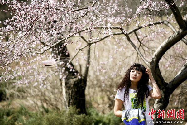 4月4日,北京植物園內(nèi)春桃怒放,眾多游客穿行與花間柳下感受北京遲來的春天。北京植物園2010年第22屆北京桃花節(jié)暨第7屆世界名花展于2010年4月1日至5月5日在植物園隆重舉辦。中新社發(fā) 陸欣 攝