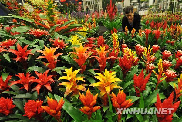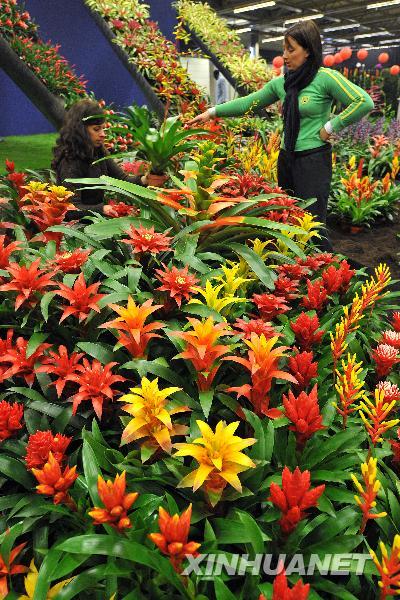 4月13日,在比利時西部城市根特,工作人員在第34屆根特花展的現場布置鳳梨科鮮花的展臺。五年一屆的根特花展是歐洲重要的花卉展覽,已近200年的歷史。本屆花展將于4月17日至25日舉行,匯集了來自世界13個國家和地區的300多家展商,占地4.5公頃的展區將成為世界上最大的室內花園。