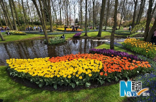 4月24日,游客在荷蘭中部城市利瑟附近的庫肯霍夫花園欣賞郁金香、風信子等花卉。庫肯霍夫花園是世界上最大的郁金香花園,種植有100多個品種的450萬株郁金香。隨著天氣逐漸變暖,郁金香和園內其他花卉競相開放,吸引了數以萬計的游客前來賞花踏春。新華社記者武巍攝