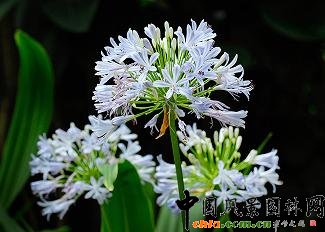 百子蓮(Agapanthus africanus)原產南非,石蒜科多年生本,因其花后結籽眾多而得名,百子蓮線狀披針形或帶形,生于短根狀莖上,左右排列,葉色濃綠。每個花莛可著花20朵至50朵,花藍紫色,傘形花序。