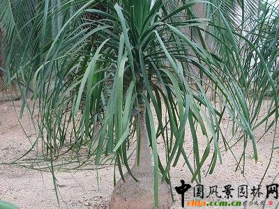 酒瓶蘭(Nolina recurvata),龍舌蘭科酒瓶蘭屬觀葉植物,為常綠小喬,其地下根肉質,莖干直立,下部肥大,狀似酒瓶。它可以多種規(guī)格栽植作為室內裝飾:以精美盆缽種植小型植株,置于案頭、臺面,顯得優(yōu)雅清秀;以中大型盆栽種植,用來布置廳堂、會議室、會客室等處,極富熱帶情趣,頗耐欣賞。