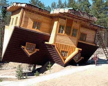 波蘭Syzmbark地區的這種完全倒置過來的房子,看起來十分不可思議,帶給人們夸張的視覺沖擊。