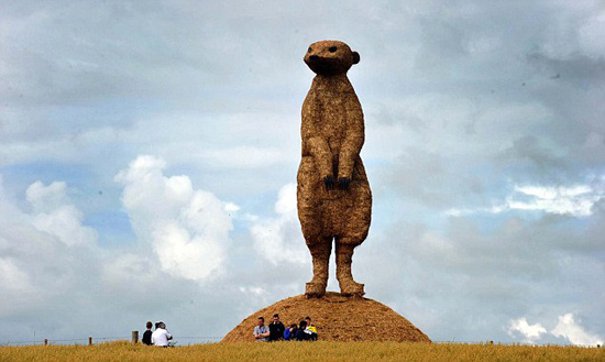 英國藝術(shù)家用稻草建造11米高貓鼬塑像(組圖)