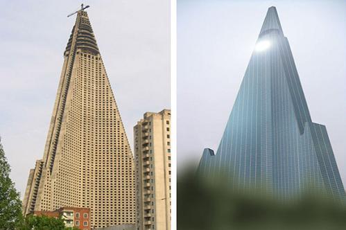 該飯店位于朝鮮平壤,這是一幢未完工的摩天大樓,整體結構成三角金字塔型,斜面角度為75度,共105層,高330米。據稱,柳京飯店原計劃成為擁有3000間客房的超級大廈,并成為全球最高的飯店之一,計劃于1989年開始營業。然而自從1982年開始建設之后,1992年完成結構工程后便一直停工,成為世界上最大的“爛尾樓”。