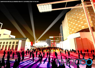 以東西向交叉的是著名的圣凱瑟琳大街,并引向與圣勞倫特大街交界處的紅燈籠。在這里,一座30層的觀景塔將作為標志性建筑建造起來,成為吸引人們從老城區和海港區前來的一座燈塔。