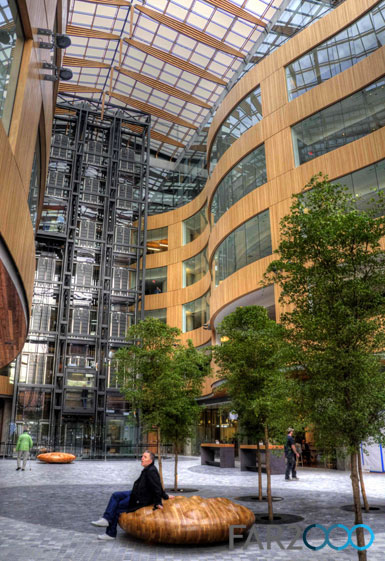 作為一座獨(dú)特的辦公樓,大型的靈活布局的樓層有著高質(zhì)量的環(huán)境,吸引了優(yōu)質(zhì)客戶。盡管看上去犧牲了可出租的面積,卻增加了很多價(jià)值。辦公室的光照和景觀得到了保證。高性能的環(huán)境控制系統(tǒng)調(diào)節(jié)了入口大廳和會(huì)議空間的空氣質(zhì)量。