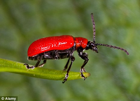 圖2 血色百合甲蟲:這種昆蟲之前只發現與英格蘭南部,現已傳播到英國其他地區
