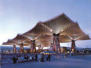 由10個40米×40米×20米木質天棚組成,以此來體現人、自然與技術之間的密切關系。屋頂是保護人類生存的基本需求之一,屋頂建造需要技術、木材又和自然關聯。