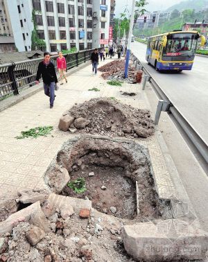 沙坪壩雙碑,街道旁的行道樹(shù)被挖走