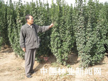 王木林還提醒苗木從業者,經營苗圃栽培管理手段也要創新。同樣的苗木種在一塊苗圃,栽培管理手段不一樣,苗木的長勢和生長枝條也不一樣。他指著苗圃里的一片白皮松說,看這里的白皮松說:一邊是使用促長劑的,一邊是沒使用過促長劑的,生長效果就不一樣。使用的要比沒使用的生長速度提高20%以上。