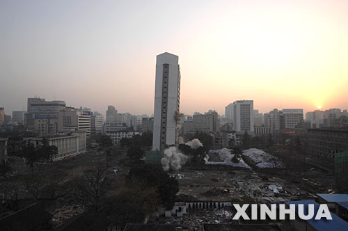 2月6日,位于江西省南昌市青山湖畔的四星級酒店——五湖大酒店在“浪費(fèi)資源”的質(zhì)疑聲中被成功爆破拆除(胡國林?jǐn)z)。