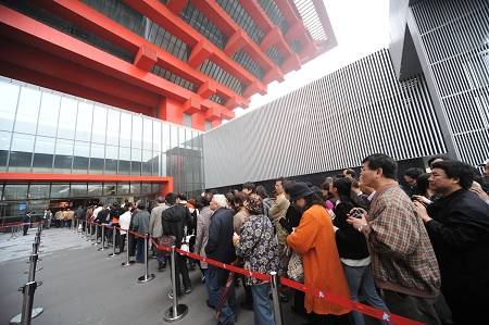 除此之外,不同的展館對于參觀人流處理的方式也不同。有的展館可以同時參觀的人數比較多,人流量比較大,即使隊伍看起來比較長,但參觀者等候的時間卻未必很久。