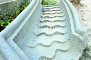 圓明園大水法遺址,流水的石槽也是極盡雕工之能事。
