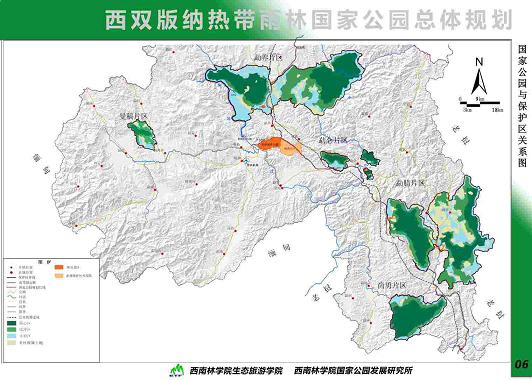 近日,《云南省人民政府關于同意西雙版納國家公園總體規劃的批復》批準了《西雙版納熱帶雨林國家公園總體規劃》。 據西雙版納熱帶雨林國家公園建設協調領導小組辦公室介紹,西雙版納州熱帶雨林國家公園總體規劃工作始于2008年4月。 2008年4月18日該州州長主持召開專題會議,會上成立了由州長親自任組長、陸永耀書記和陳啟忠副州長任副組長、三縣(市)長和州直相關部門領導為成員的“西雙版納熱帶雨林國家公園建設協調領導小組”,下設辦公室在西雙版納國家級國家級自然保護區管理局,負責開展國家公園的總體規劃、建設及相關工作。 西雙版納熱帶雨林國家公園由勐海、勐養、攸諾、勐侖、勐臘、尚勇六大片區構成,總面積2854.21km2。其中,國家級自然保護區面積為2425.10km2、占國家公園總面積的84.97%,國家公園新增面積429.11 km2、占國家公園總面積的15.03%;五大功能區中,自然生境區控制面積1800.26km2、占國家公園總面積的63.07%,生態保育區控制面積669.3km2、占國家公園總面積的23.45%,傳統利用區控制面積314.69km2、占國家公園總面積的11.03%,游覽展示區和公園服務區控制面積69.96km2,占國家公園總面積的2.45%。 西雙版納國家公園內生態旅游規劃總體布局為“一個生態旅游集散中心、五大核心生態旅游景區(品牌)、三條主干生態旅游線路、六個生態旅游片區、九個生態旅游重點發展項目以及三大類生態旅游產品”。