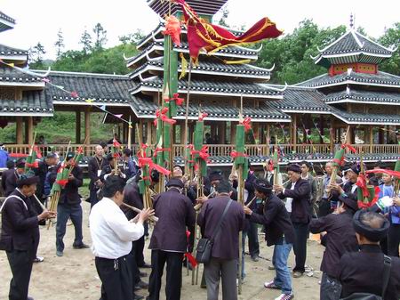 5月2日,三江縣良口鄉河里村擺開一百多桌百家宴,慶祝該村新風雨橋——人安橋的落成。當天,成千上萬游客和附近群眾、全國各地攝影愛好者涌入和里村,人安橋落成慶典現場人山人海,場面蔚為壯觀。 人安橋是河里村民們自覺捐款捐木料、多方籌資募款近30萬元建設成的一座集現代與傳統為一體的風雨橋,橋墩及橋面為鋼筋水泥結構,橋面以上為侗族傳統的純木結構風雨橋建筑。人安橋所在地距321國道約1公里,與著名的人和橋遙相呼應。 三江縣良口鄉河里村是著名的夜郎文化遺址,這里地勢平坦,是三江山區少有的平原地帶,這里有聞名中外的三王宮和人和橋,還是三江縣村寨防火改造的示范基地。近幾年,河里村注重發展文化旅游,村民們思想超前,為了把該村建設成為獨具特色的侗族經經典文化旅游區,大家踴躍捐錢捐物,在短短的幾年時間內,投入上百萬元,建成了三座鼓樓(楊氏鼓樓、歐陽鼓樓、延陵鼓樓)和一座風雨橋(人安橋),為該村的侗族文化旅游增添了眾多新景點。