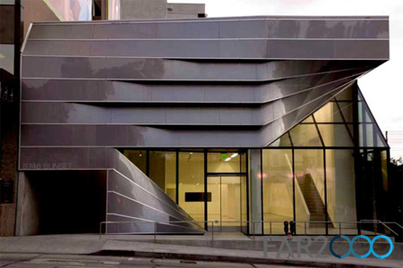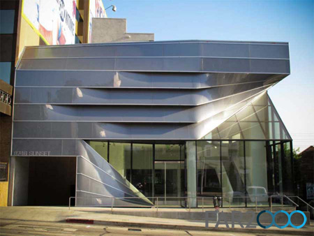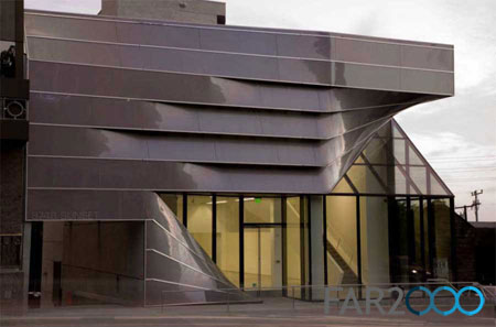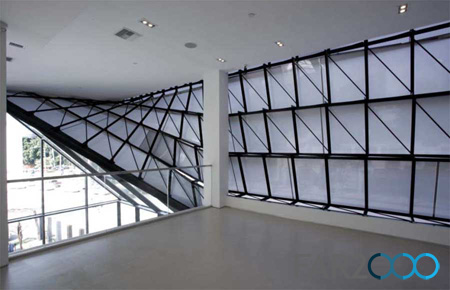 據(jù)10月22日?qǐng)?bào)道,Prism美術(shù)館坐落在美國(guó)加州西好萊塢的陽(yáng)光地帶,是一座新建的三層建筑。這座文化中心的使命是成為藝術(shù)家實(shí)驗(yàn)的奠基石,為南加州的藝術(shù)探索新的利基。除了展覽空間,這里還設(shè)有書(shū)店,并在今年11月12日向公眾開(kāi)放。美術(shù)館的立面也是美國(guó)第一座全部用以樹(shù)脂為原料的合成聚碳酸酯建造的立面。 美術(shù)館采用了視覺(jué)和實(shí)質(zhì)上的動(dòng)態(tài)設(shè)計(jì),這既是一個(gè)挑戰(zhàn),也改善了美術(shù)館的運(yùn)動(dòng)路徑。其邏輯是構(gòu)成現(xiàn)有建筑規(guī)則的梁柱結(jié)構(gòu)與密集的社會(huì)活動(dòng)之間的對(duì)話。建筑的表層可以抬升放下,打開(kāi)后懸垂在條帶結(jié)構(gòu)之上,對(duì)路人和靠近的車輛來(lái)說(shuō)有一種厚重感。 Prism美術(shù)館是由Patterns事務(wù)所與3Form公司合作設(shè)計(jì)的,后者是一家材料制作公司,專門(mén)制造樹(shù)脂為原料的合成材料。在日光下,立面顯得光潔無(wú)瑕,而在夜晚則呈現(xiàn)出略有凝固的半透明性。