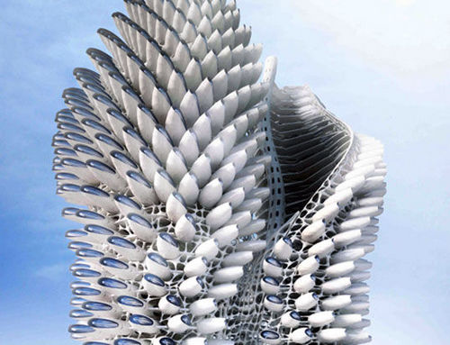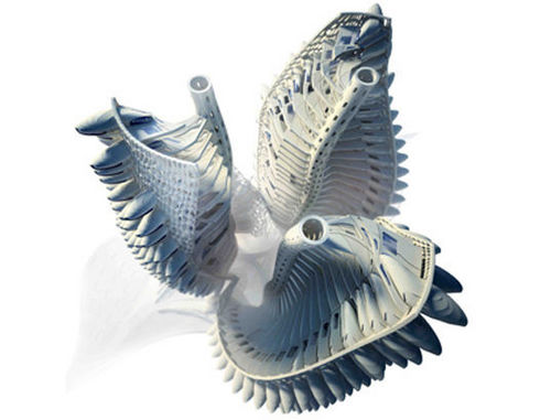 Chimera設計公司為未來的倫敦設想出了一系列令人難以置信的螺旋式摩天大樓,其結構之復雜、多樣堪比紅樹林濕地生態系統。該項目取名為“曼加勒之城”(Mangal City),它利用一個一個分離的小單元組合成整個“城市生態系統”,還能夠根據環境條件的變化做出適應性的調節。“曼加勒之城”無疑是仿生學應用的又一典范,其中寄予著設計者們大膽而又夢幻的想象,從它身上我們能夠讀出未來派建筑的一大特色——那就是靈活多變。