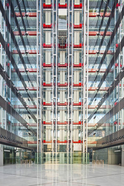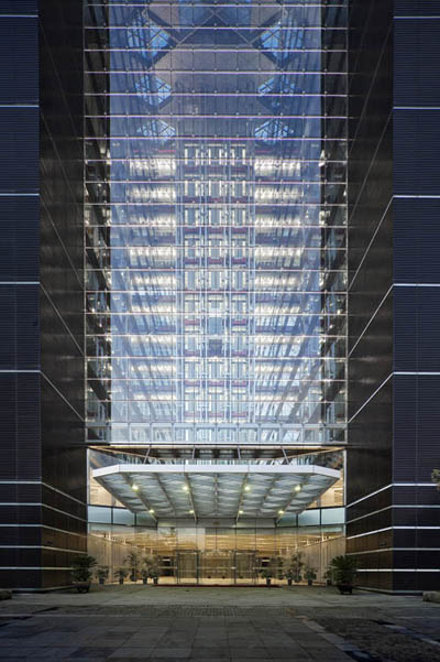 開放式電梯塔樓是整個建筑的焦點,三部觀光電梯橫穿中庭垂直向上到每層的天橋連接兩座辦公塔樓。電梯的活動不僅僅在大堂可見,透過通高建筑的拉索幕墻從外面也能看見。建筑的通透性為建筑本身以及室外道路增添了全日可見的動感。 美國GP建筑設計有限公司是一家總部在芝加哥的建筑公司,提供創新的建筑,室內,規劃以及建筑外幕墻設計服務。在上海和阿布扎比也有分公司,公司的業務擴展到四大洲。最近完成的項目包括在北京、芝加哥及上海的辦公樓,中國、印度及美國的高級商務酒店。精選的近期項目包括了芝加哥東倫道夫300號大樓在原有的33層建筑上垂直增加24層;伊利諾州埃文斯頓西北大學新標志音樂大樓;沙特阿拉伯利雅得國王阿卜杜拉金融區的一個214個客房的溫德姆酒店;以及在阿布扎比的一座三百萬平方英尺的辦公綜合體建筑群,是阿布扎比證券交易所的總部大樓。