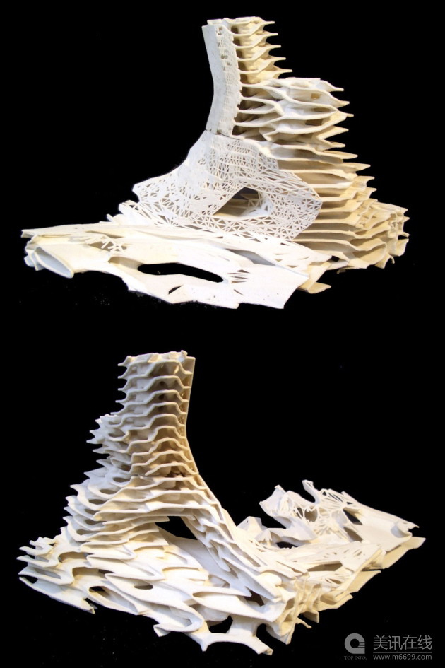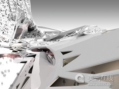 所有的古城,具有歷史意義的城市和當代的城市都隱藏了空間順序,幾何結構和分配等級,這些都與再分手法有著聯系。細胞型的“網狀”城市所提出的工作和研究已被直接用于世界擴張速度最快和密集度的城市——上海加快城市化模式的設計和研究之中。人們對于智能和相互關聯的城市組織中的新定義和形式進行了研究,以尋求出重新定義現有城市化的潛力,并建造相互統一且不同的建筑系統和城市空間,同時制定出未來城市發展和進化的方案。 細胞型的“網狀”結構將城市用一種全球和地方規則,法典和政策的數學性表達,不斷重塑從部分到整體的空間關系。用計算機和已有的能力來管理高標準的復雜性,這種方法展現了城市和建筑空間,結構,系統以及各組成部分的一種微妙的調節,同時用關聯模型和算法程序所產生的迭代圖形空間的新形式來試驗。 這有著雙重的效果:首先它是2010年世博會的一個樣本城市世博會,其次在2010年后它對于這一區域的遺產可能有的未來的規劃。城市細胞網絡被用于為2010年世博會配置一種厚的,深及“多樣化”的城市階層。空間細胞和相互聯系在區域中橫向的進行了擴展并且以一系列新的迭代樓類型的方式豎直的發展,這些類型在多樣性的規模、密度和高度中定義了一種相互粘連但不同的分段組織。從直線部分到逐漸的空間過渡,配置中所獲得的增長和擴展的特別規則和形成曲線空間和結構的一種分段式的數學方法同各種地域規模系統進行編碼。曲線的表面模塊被控制在被約束的空間之中,并且在各種規模上進行連續的編排以形成集合的建筑結構,空間分隔,多孔的外立面系統,獲得來自于簡單規則中的高規則的組織復雜性。 細胞型“網絡”城市2008年1月25日在AA School of Architecture Candidacy Jury上進行了展示,并獲得了建筑設計和城市化方面的March Degree獎項。這一工程的團隊成員有:Jinqi Huang,Junkai Jian和Lina Ahmad。