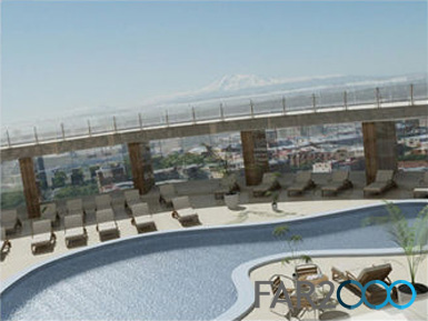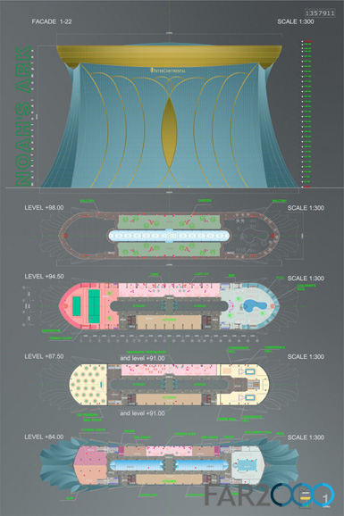 亞美尼亞首都耶列萬將修建一座“諾亞方舟”形的國際商務(wù)中心,這代表著世界的重生。年輕事務(wù)所Vardanyan Vardan & Nersisyan Artur制定了這個概念計劃。該計劃是混合用途的項目,除了國際商務(wù)中心之外,還將建造洲際飯店和高端公寓樓。 建筑的外形像是巨浪上的方舟,并飄到阿勒山。而且,方舟的大小與圣經(jīng)中《舊約》完全一致:長300肘、寬50肘、高30肘并有三塊甲板。一肘相當(dāng)于52厘米長,因此方舟的尺寸換算過來應(yīng)該是:157米長、26米寬、15.6米高。 盡管商務(wù)中心、飯店和公寓都在一座建筑中,但它們有各自的入口。中庭則分割了飯店客房和辦公室。會議室、健身中心、餐廳、酒吧和咖啡館交叉在一座共享的空間里。 左右的高端公寓和全景咖啡館和餐廳、會議中心、健身中心、體育館、室外室內(nèi)泳池都面對著“阿勒山”。在猶太教與基督教共有的傳統(tǒng)里,阿勒山是諾亞方舟停靠的地點。