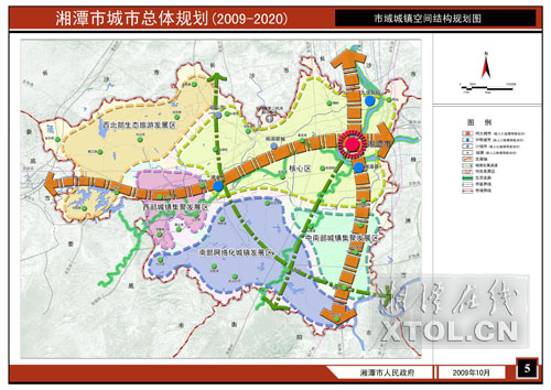 規劃區重大服務設施規劃圖 2月9日晚,《湘潭市城市總體規劃(2010-2020年)》正式獲得國務院批準。歷時十年編制、審查的《總體規劃》成為指導城市建設與發展的綱領性文件。 早在本世紀初,湘潭市就著手第六次城市總體規劃修編工作,十年里,經過了三次修改,三層審查。“我市總體規劃修編工作走在了全省的前列。”全程參與此次規劃修編工作的龍正輝介紹,全國共有86個城市《總體規劃》需經國務院批準,我省有4個城市,分別是長沙、株洲、湘潭、衡陽。目前,湘潭是四市中第一個獲得批準的城市。通過國務院批準,意味著《總體規劃》被賦予了法律效應,成為指導我市城市建設與發展的綱領性文件。 《總體規劃》由市規劃局承辦,邀請中規院主持編制,涵蓋了經濟社會發展、城鄉建設、土地開發與利用三大板塊的內容,由32個分項規劃組成。《國務院辦公廳關于批準湘潭市城市總體規劃的通知》指出:湘潭市是長株潭地區中心城市之一,湖南省的重要工業、科技和旅游城市。《總體規劃》的實施要以科學發展觀為指導,堅持經濟社會、人口、環境和資源相協調發展的可持續發展戰略,統籌做好湘潭市城市規劃、建設和管理的各項工作。《通知》還對我市《總體規劃》的實施提出了六個方面的要求,分別是:重視城鄉統籌發展;合理控制城市規模;完善城市基礎設施體系;建設資源節約型和環境友好型城市;創造良好的人居環境;嚴格實施《總體規劃》。《通知》特別強調,湘潭應進一步優化城區“一江兩岸”的山水城市布局,逐步完善中心城區功能,提高中心城區對周邊地區經濟社會發展的輻射帶動作用。到2020年,中心城區的人口要控制在110萬以內,城市建設用地控制在110平方公里以內。