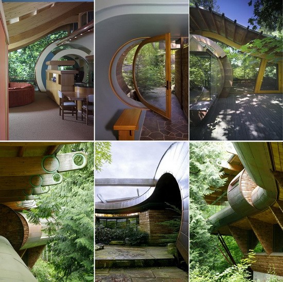 木屋的各個角落 樹林中的小木屋一般被看做是慈愛的父親送給孩子的溫馨禮物,但美國建筑師羅伯特·哈維·奧赫茲在美國俄勒岡州波特蘭市建造的一座樹林木屋以其獨特的設計和與外界環境的完美融合,越來越受到建筑愛好者的關注。 據克羅地亞“房地產”網站報道,這座樹林木屋開建于1997年,2004年完工。這座房子建在一個陡峭的斜坡上,屋檐緊貼樹枝,讓人在每天早上都可以沐浴在樹林的清新空氣中品味香濃的咖啡。這座房子最大的特點就是對曲線的運用。舊金山的倫巴底街被譽為是世界上最彎曲的街道,有人打趣說,這座房子的彎曲程度甚至還超過了倫巴底街的。當人們真正看到這座房子的時候,才會相信它確實存在。 房屋的定制者是一名音樂愛好者,他希望自己的房子可以與周圍的風景和諧地結合起來,并能具有音樂的靈魂。當穿過房間時,人們才能真正感受到房屋設計和建造的復雜性。而它的木質房梁和大型的玻璃幕墻更給人留下深刻的印象。