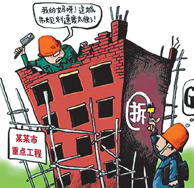 王啟峰繪(人民圖片) “短命”建筑源自短視規劃、問責不力。加大問責力度、促進科學規劃,引起兩會代表委員熱議。 安徽宿州市市委書記李宏鳴代表: 城市建設不能單純追求開發效益 在城市化進程中,一些建筑出現的“短命”現象,涉及城市規劃、建筑設計、地產開發等方面。 政府拆遷的成本是通過土地收益獲得補償,只要拆遷成本低于土地收益成本,在政府認為需要的時候,就可能同意拆。從開發商來說,只要拆后的收益大于拆遷開發的成本,他就會有投資的沖動。從投資來說,無可非議,但從社會要素來說確實是一種浪費,只是重新分配一遍,并沒有真正產生社會財富。這要求我們在推進城市化建設中不能單純追求開發效益,造成社會資源的極大浪費。 河南駐馬店市市長劉國慶代表: 城市規劃要有超前意識 城市規劃一定要有超前意識,制定時應站在全省乃至全國的高度,全面分析對周圍地區的輻射力和吸引力,確定其發展的優勢和速度,以適應未來發展的需要。一些重點的基礎建設,規劃要做到幾十年甚至上百年不落后。要把關系城市整體和長遠發展、公共利益和公共安全、重要自然和文化遺產資源保護、生態環境的規劃內容列為強制性指標,尊重客觀規律,多出精品、美品、成品。駐馬店人口有800多萬,城市化率低,未來必有大量農業人口轉入城市,為此我們高度重視規劃先行,切實做到高起點規劃、高標準建設。 貴陽市市長袁周代表: 城市規劃不要被領導意志主導 為加強城市規劃領導,貴陽市專門成立了城鄉規劃建設委員會,由貴陽市委、市政府主要領導,省建設廳、省國土資源廳、省文化廳、省環保局等十幾個部門的主要負責人組成領導小組,下設辦公室和專家委員會,專家委員會由特聘專家組成。 成立貴陽市規劃委,為的是什么?就是避免“長官意志”。城市規劃是城市建設和管理的基本依據,是城市發展的龍頭,規劃一旦確立,就應該維護其權威性,不容輕易改動,更不容根據個別領導的意志來主導改動。凡是城市重要規劃,要講嚴格規矩、程序,先要經過各方專家嚴格論證,再由領導小組專門研討,最后投票通過。 海南五指山市副市長陳國誠代表: 落實審批程序強化問責機制 解決“短命”建筑,要落實現有措施,強化問責機制。我國城市規劃大都是基于未來10年、20年的長遠規劃,具有充分的前瞻性。我國對于城市規劃、建筑設計的制定、修改都有嚴格、完備的審批程序,其中還有公示環節,強調公眾參與。“短命”建筑,大都是程序執行不嚴格造成。要終結“短命”建筑,就必須落實建筑設計的審批程序,嚴格公示制度。 不嚴格按照程序審批建筑設計方案,就是一種失職瀆職,就應該嚴格按照相關條例追究問責。審批部門有審批的權力,也有維護公眾利益的義務。